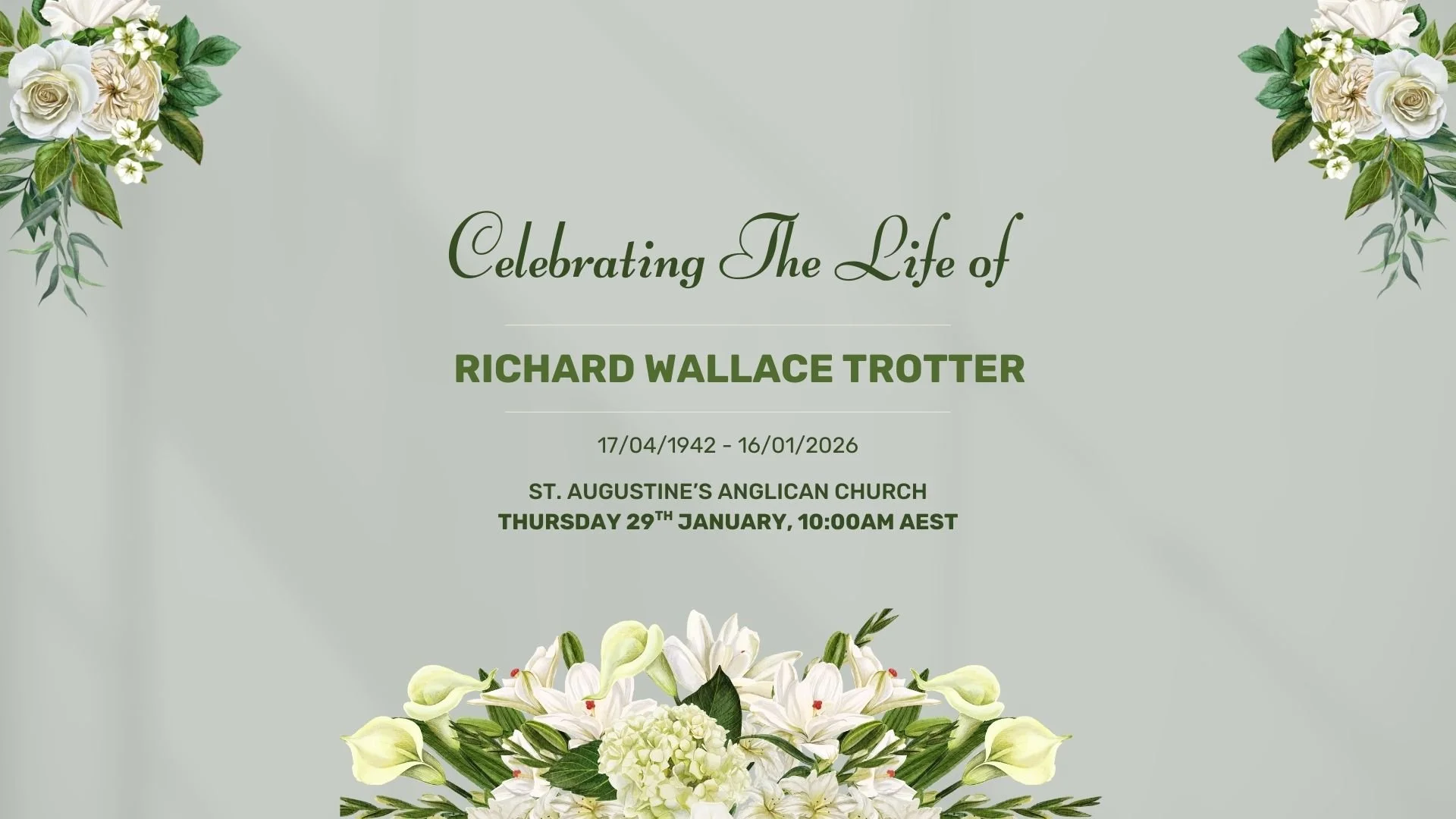 Alex Gow Services The Memorial Service of Edwin "Peter" Heather Thursday 10th February, 202611:00am AEST Watch Here The Memorial Service of Richard Wallace Trotter Thursday 29th January, 202610:00am AEST Watch Here The Memorial Service of Richard Tutin Monday 12th January, 202610:00am AEST Watch Here The Memorial Service of Maj. David George Savage (ret) Watch Here